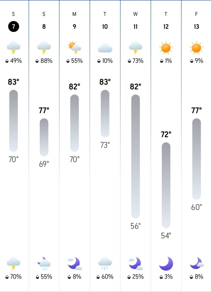 It didn’t work. At 7:30, while it was only 73F, the humidity was approximately infinite. The streets were wet from overnight showers which hadn’t evaporated .