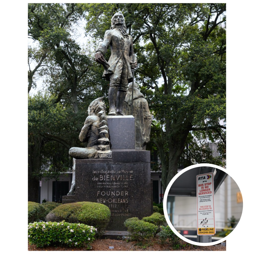 I did learn something: the first governor of New Orleans, during French ownership, was Jean-Baptiste Le Moyne de Bienville, a French-Canadian borne in Montreal. I also learned that New Orleans decided it’s cheaper to put up a sign than take down no-longer used streetcar shelters.