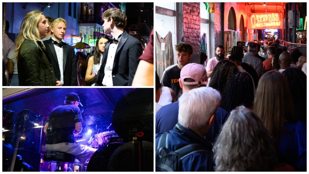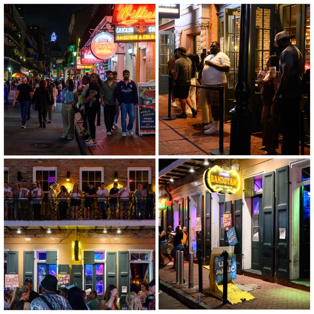 Dinner was at a restaurant in the French Quarter called Bayona and was excellent. After dinner, we decided to walk back to the hotels and go along Bourbon Street for part of the walk. It was quite an experience, and a bit of a mess. Bourbon Street is the center of seedy culture in NOLA, extending 12 blocks and is the home of bars, restaurants and strip clubs.