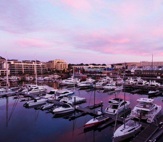 Today, our last day in Cape Town, started with a beautiful sunrise reflected in the clouds and the marina outside our hotel room.