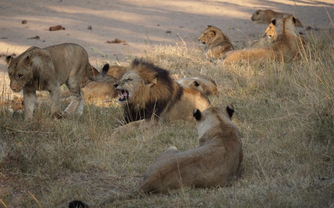 We saw a lot of our old friends again today. At this point, after a couple of days of following the same animals around, you start to get a sense of their life and daily activities. We started by heading back to the first kill site we had seen early yesterday. On our way, we passed the pride of lions heading away from the site. That meant they had gorged themselves, and there was likely just bones and scraps left.