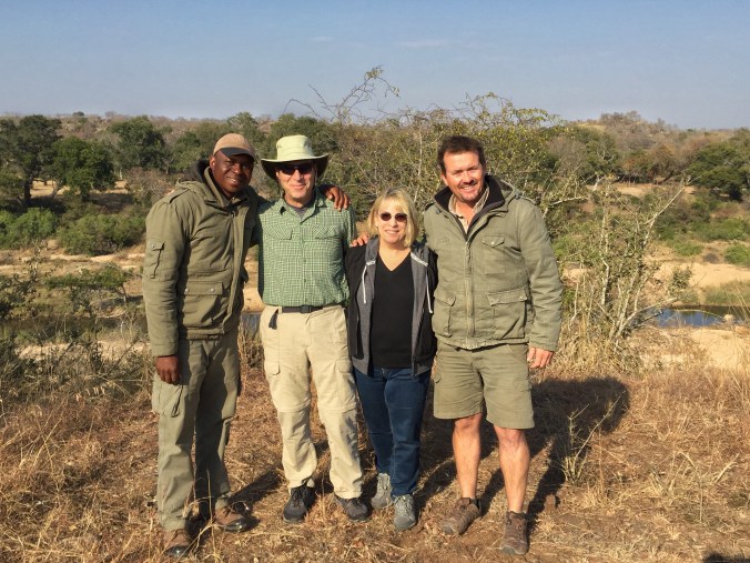 Much later, after seeing more elephants, hippos, rhinos, lions, endless impala, and who can remember what else, we ended the day with a traditional sundowner – drinks and snacks in the bush served by our guide and tracker.