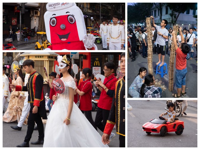 I had pictures of motorbike riders in earlier posts, and you undoubtedly noticed the face masks. The air in Hanoi is pretty bad, but it’s much worse here. A significant portion of bikers wear them. I saw people get out of cars and put on masks before walking away. I saw people working at their sidewalk stores wearing masks. So we were offered masks by Henry and took them. I’m not sure they are anything more than a placebo, although they probably help with the larger particulate matter. We only wore the masks while riding on the bike.