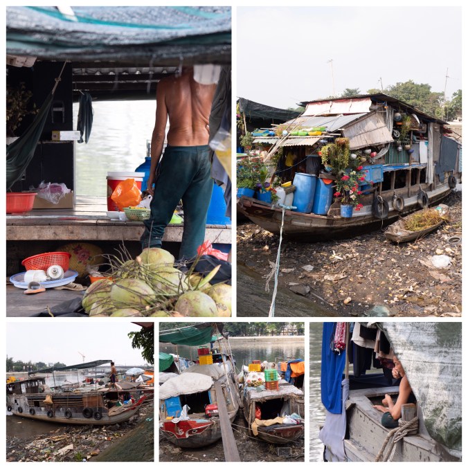 But this was more than a ride, it was a tour. When he picked us up, Henry asked what we wanted to see. We pleaded ignorance, so he took us on his favorite itinerary. The first stop was the remnants of Saigon’s floating market. Like Bangkok and the other large cities in the region, the government doesn’t like these markets for lots of reasons, including health concerns and their generally unsavory appearance. The people live on their boats and spend a few days in Saigon selling, then they sail back down to the Mekong delta where they spend a few days buying product. Among other things, it means their children don’t get much of an education (5).