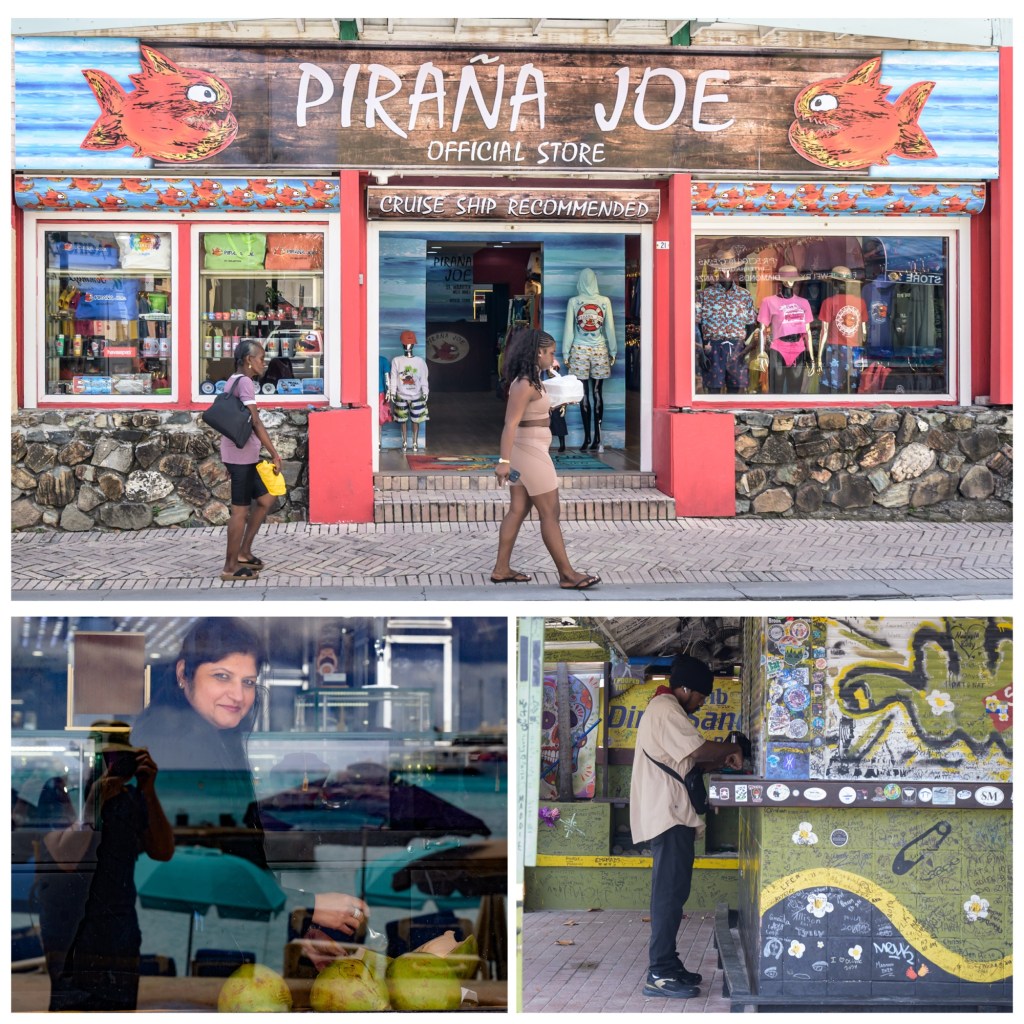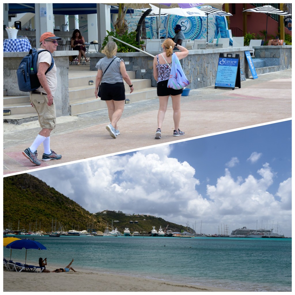 Philipsburg is the capital of the Dutch side of the island – Sint Maarten. It is also where the cruise ships dock, and it’s filled with jewelers, clothing stores, bars, t-shirt shops, and everything else that a cruiser could want. After parking on the sidewalk (1) we went for a stroll along the beachfront.