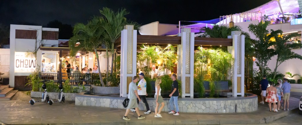Since we ate lunch late, the rest of the crew didn’t want to go out for dinner, preferring to eat left overs from prior meals that they had squirreled away. I always prefer to go out, and went back to Maho for a pizza later in the evening. Here are some shots from the town after dark.
