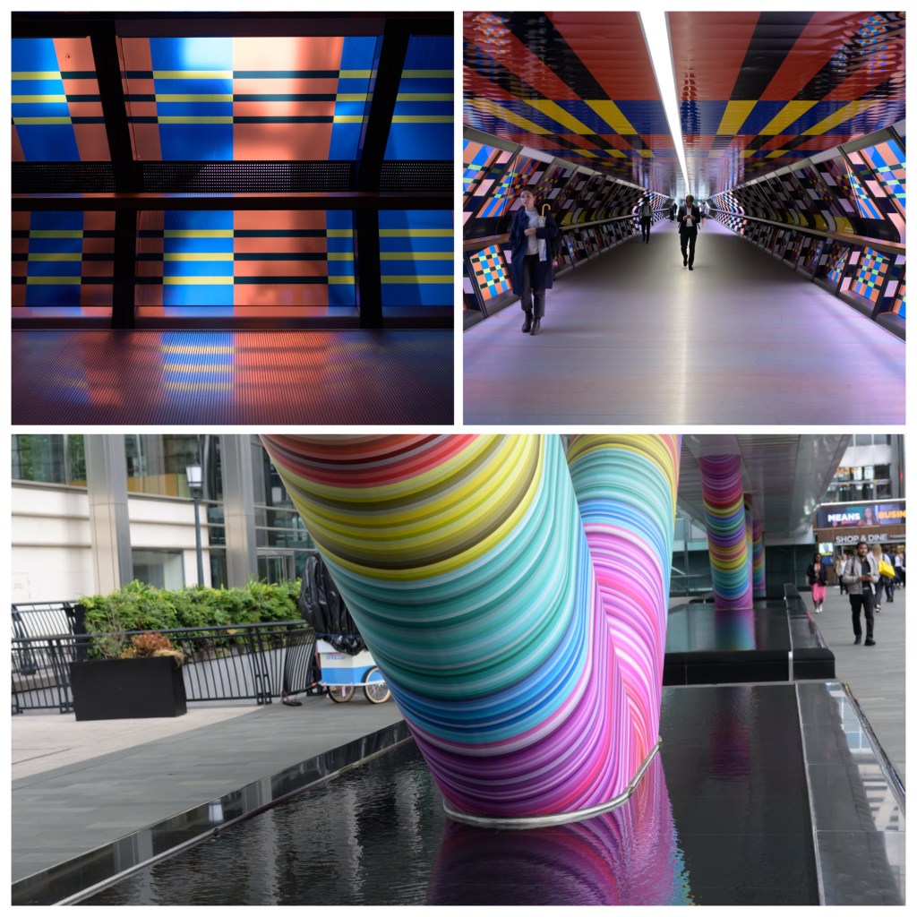 First off was a covered walkway connecting the office space with the tube station. Rainbow colored, it had translucent panels and the light inside the walkway was interesting.