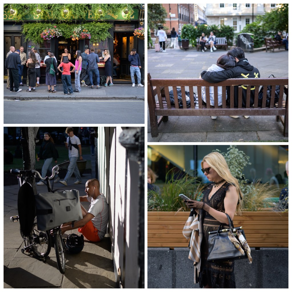 At this point, we headed back to the city. We all split up; I headed back towards SoHo to see what I could find. There were a few nice images; nothing earth shattering but I like them. Just people enjoying the weather, being with someone they like, waiting for their date. Or doing that English favorite, drinking on the sidewalk outside the pub,