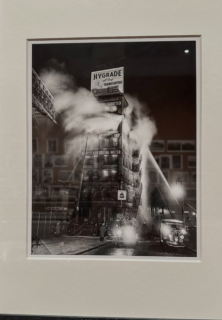 As a bonus, there is a permanent photography exhibit in two large halls on the fourth floor of the museum which we went to visit. One of the halls in dedicated to Elton John and David Furnish; Elton donated his extensive collection of photographs to the museum a few years ago. The exhibit was American photographs; it was seriously excellent and worth the time we spent there. The image above, by a famous photojournalist who went by the name Weegee was a page 1 photo of a fire that was taken with very primitive equipment in 1943.