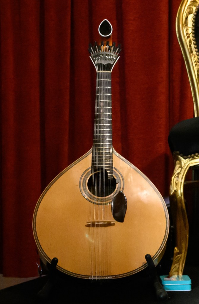 Along with the singing, Coimbra fado has developed a specialized guitar, the Portuguese Guitar. This is a 12-stringed instrument, like a normal 12 string guitar, with six pairs of strings: 3 pairs tuned in an octaves, and the other three tuned in unison. However, the tuning is very different than a normal guitar, and it utilizes a unique tuning mechanism on the headstock.