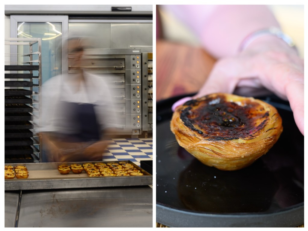 At this point we stopped for a snack. All over Portugal we’ve seen pastries called pastel de nata – small, round custard tart. Annabella told us that they were first made, and are still the best made, in a shop we were passing. So we went in, and Sally agreed that they were the best. The pastry chefs were rushing in the back to make hundreds and hundreds of pastries to meet the demand of the people who were lined up to get into the pretty large restaurant and have some.