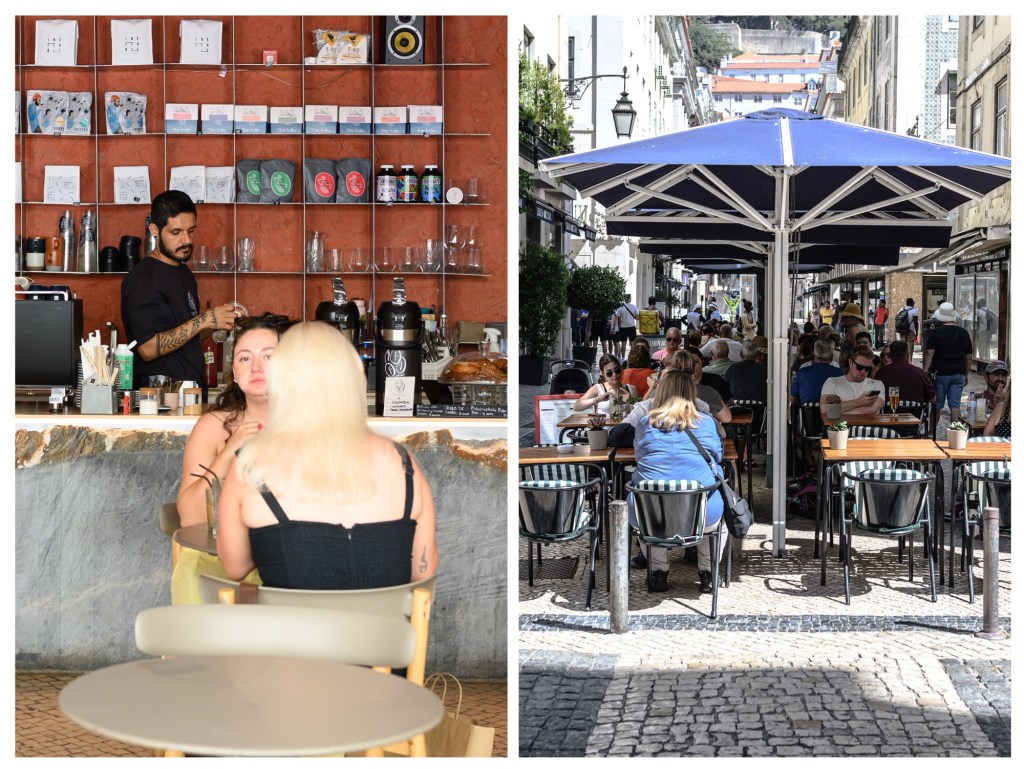 Many of the streets in the Baixa are pedestrian only and some of them are filled with tables for the restaurants that line the streets. We noticed that all of these are located on the east/west oriented streets, thus providing shade from the building on the south side of the street. Given that it’s 93F at 5:00pm as I write this, that is probably a good idea.