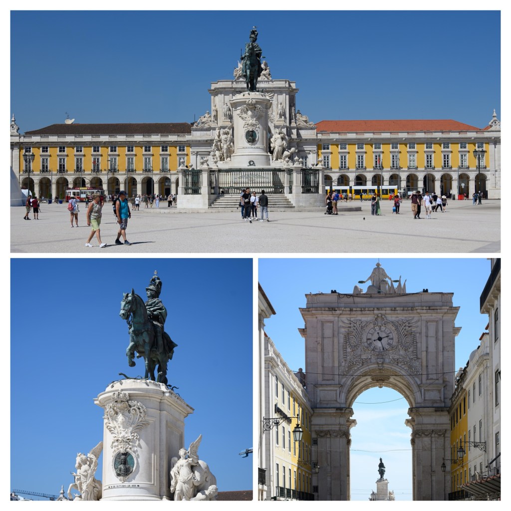 After viewing all of the cars, we continued down the avenue towards the downtown area known as Baixa. This area is close to the Tagus River and forms a flat plain in between the hills. It was devastated by the 1755 earthquake and resulting tsunami, and subsequently rebuilt as a modern grid, with streets laid out in right angles to each other. It’s now a major tourist area, with small shops and restaurants, and is anchored at the river end by a very large plaza Praça do Comercio and arch, Arco da Rue Augusta. While you can visit the top of the arch for the views, we simply viewed it from the plaza and then moved on.
