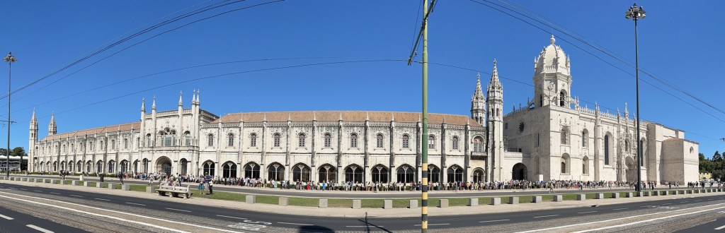 We passed, but didn’t go into, the Monisteiro dos Jeronimos, which houses several museums. First, we weren’t very interested. Second, note the line waiting to enter. The tiny people waiting to enter give you some sense of the scale of the building.