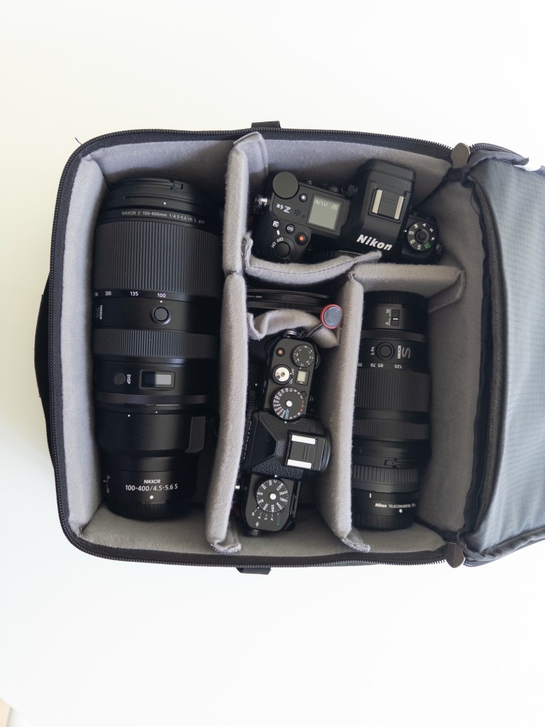 The core camera kit was perfect. In Cape Town, I used the tiny 40mm lens for walking around, but prefered the 24-120/4 for our sightseeing day. In the camps, the 100-400/4.5-5.6 got 70% of all the usage, with the 24-120 with 28% and 2% for my iPhone.