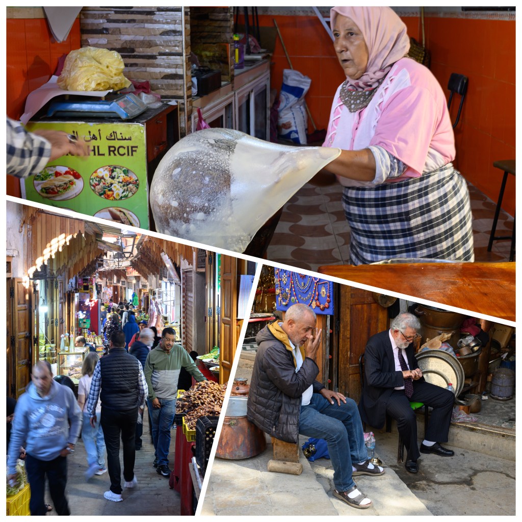 It might seem mundane to some, but one of the things I enjoy about travel is walking about in cities to see what the people there look like, what they do, and how the real city – not the tourist sites – look. What I saw this morning was moms taking their kids to school, (mostly) men sitting at cafes. The main streets, which allow cars, near the Medina were uncrowded.